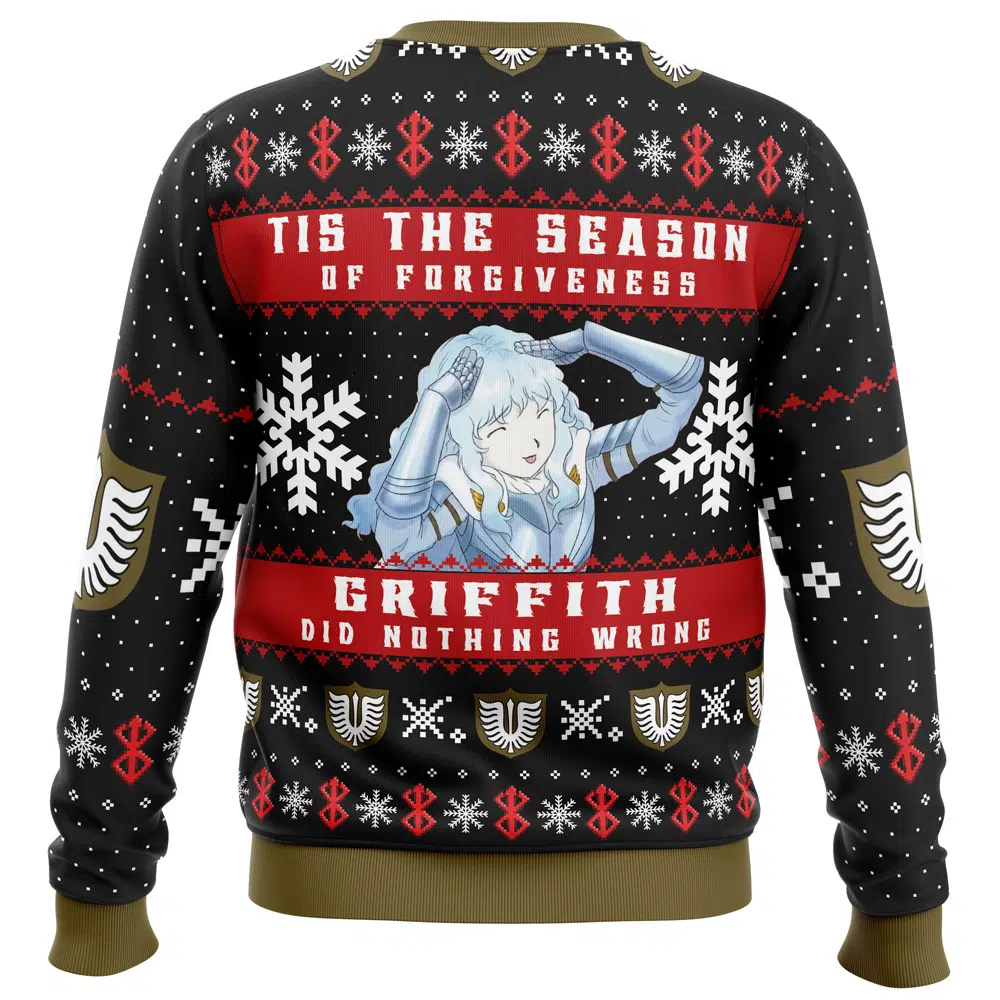 Get into the spirit of the holidays with our collection of Berserk Ugly Christmas Sweaters! Embrace the festive cheer while still representing your favorite dark fantasy manga series. These sweaters feature iconic Berserk characters and holiday-themed designs, making them perfect for any fan looking to add a touch of twisted holiday fun to their wardrobe.
